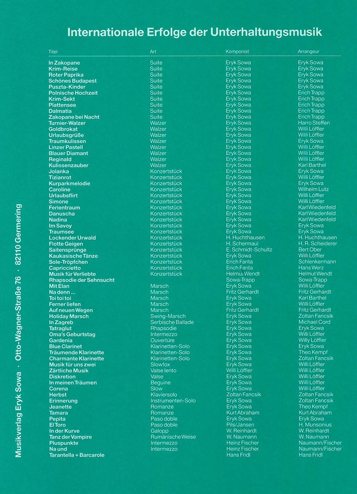 Erinnerung von Eryk Sowa – enthaltende Direktionen: