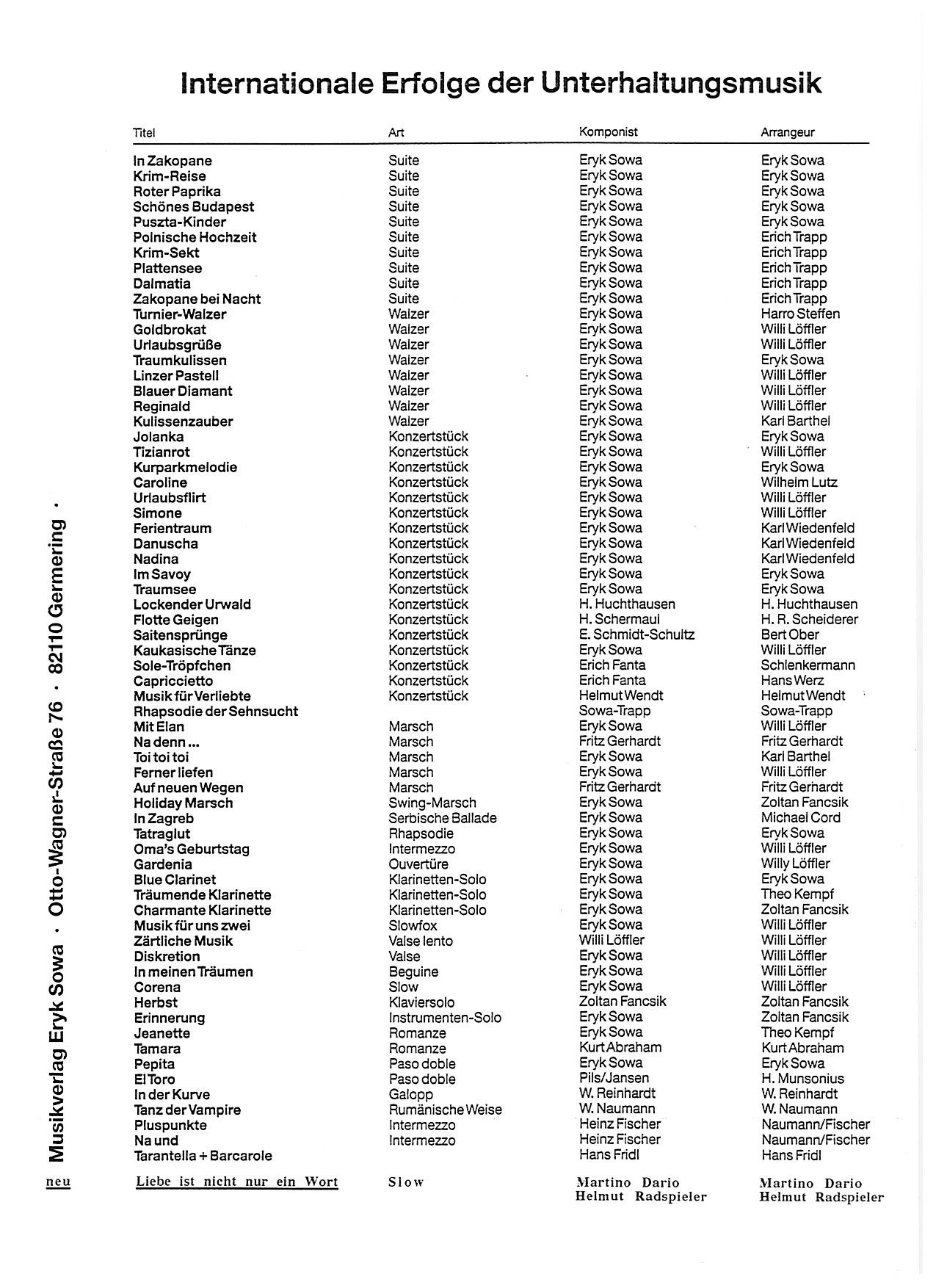 - Arrangements for salon orchestras: