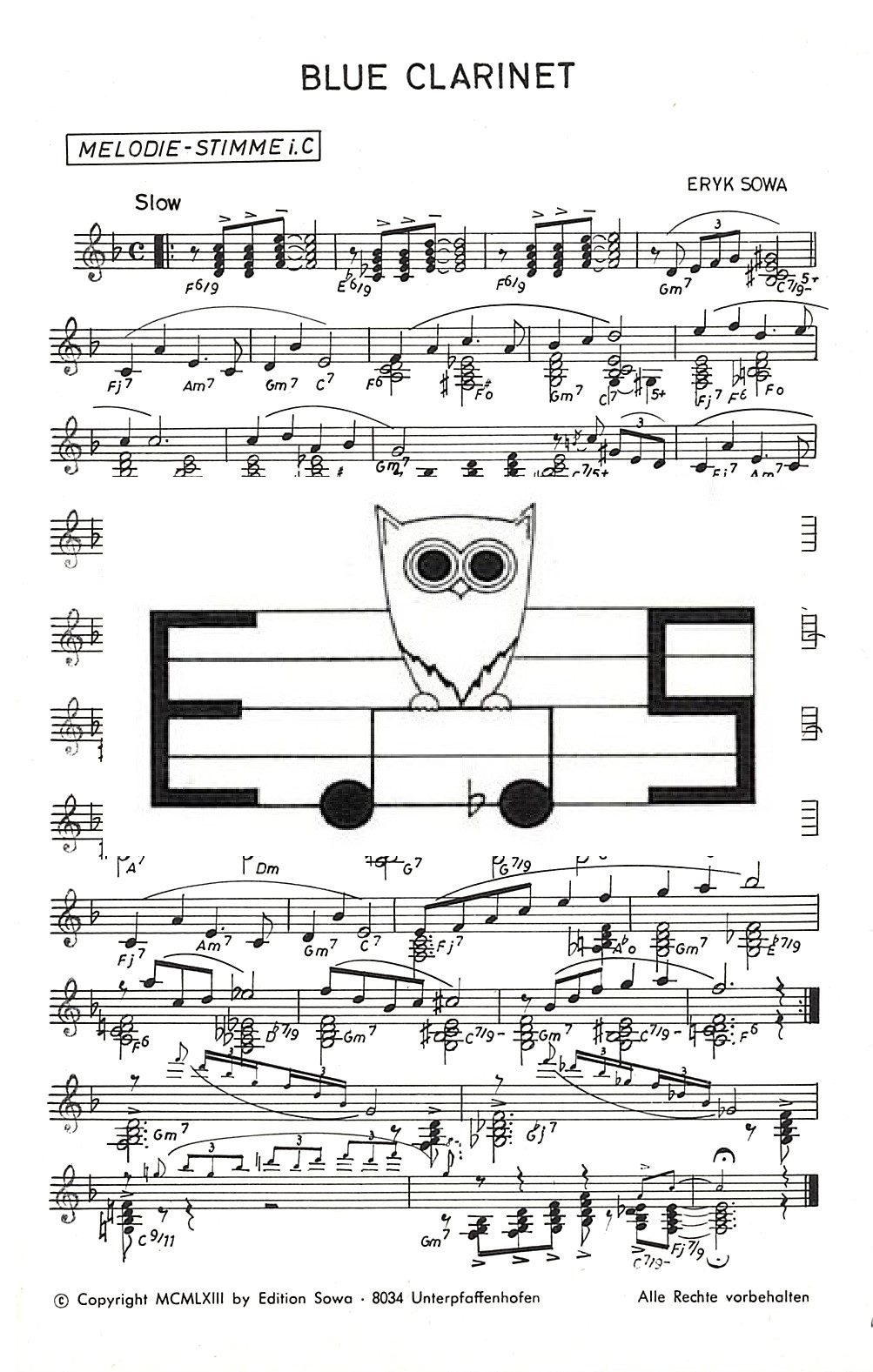 One of the best known works by Eryk Sowa is "Blue Clarinet", a concert dance study that has appeared on records. On "Ariola" this composition is interpreted by Kurt Henkels's orchestra, with the world -famous clarinetist Rolf Kühn playing the solo part.
