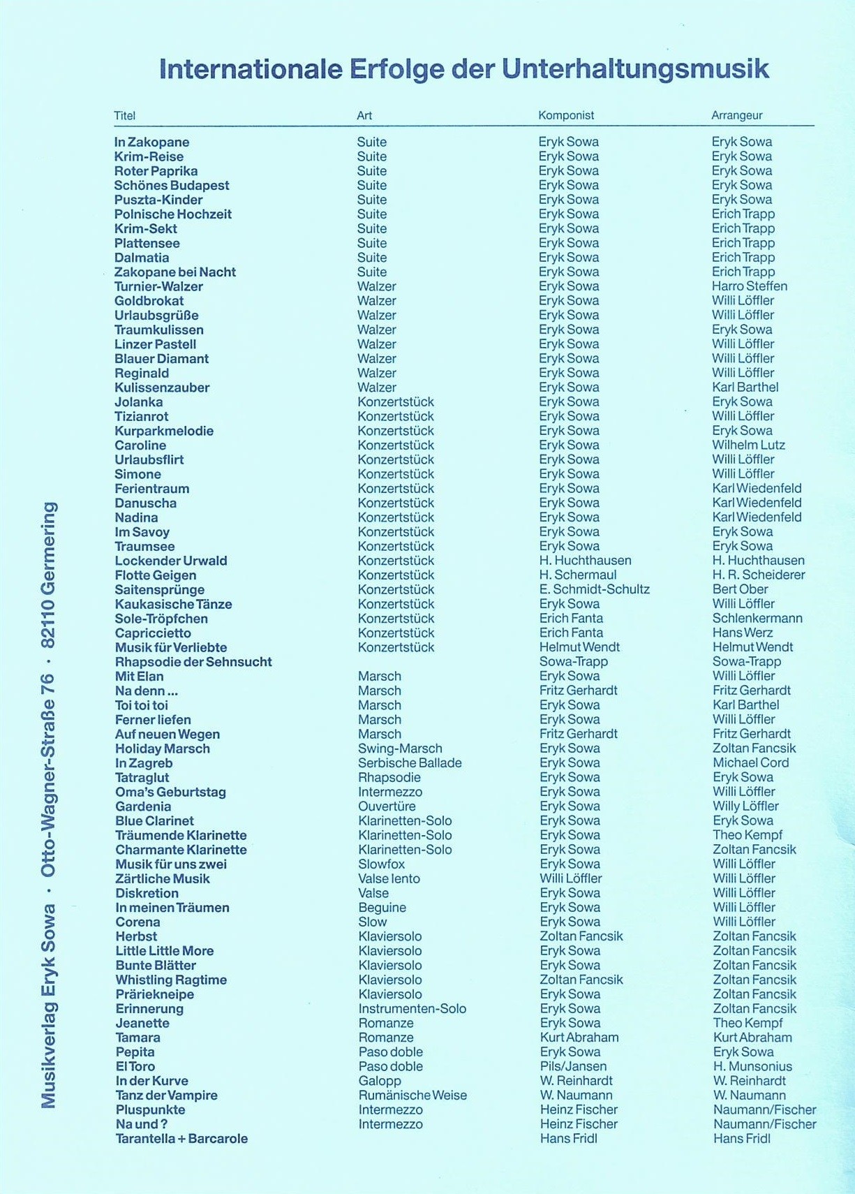 - Arrangements for salon orchestras: